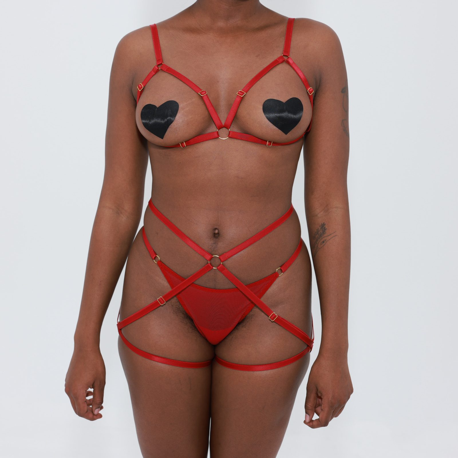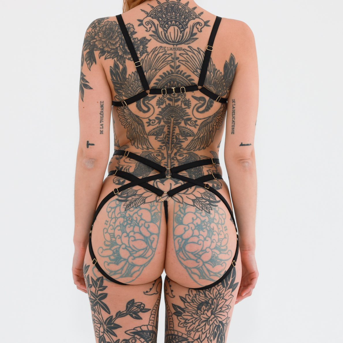 L’ensemble Honey-Baby se compose d’un haut effet soutien gorge et d’un harnais de hanches en douce lanières élastiques et réglables pour un ajustement parfait au corps.
